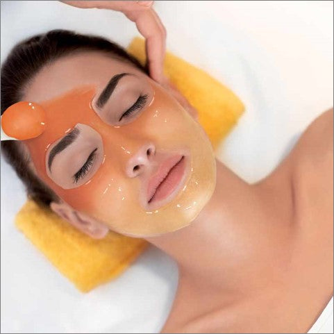 The Chrome Anti-Aging Peel-Off Mask is a changing color mask. When combined with water, the pale yellow powder of this modeling mask become an easy-to-apply, coral-red alginate gel. The skin is more uniform and brighter. Skin-elasticity is enhanced and the effects of ageing are delayed and reduced. This skin care is suited to mature skin in need of vitality and tonicity.